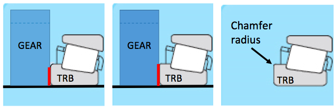 Case 1: Optimised chamfer on TRB for transmissionAfter testing a new transmission it appeared that an adjacent gear was insufficiently supported and showed too much deflection, ultimately leading to early failure. After analyzing together with the supplier, the solution was found in reducing the chamfer radius of the TRB cone side face, compared to the ‘catalogue design’ standard, resulting in sufficient contact/support area for the gear. In the repair market, often standard/catalogue design products are offered for repair, leading to problems in the repaired transmission in operation and ultimately leading to early failure. Using OEM validated parts is the only way to be assured of having the best ‘custom made’ and officially tested and validated parts for repair.