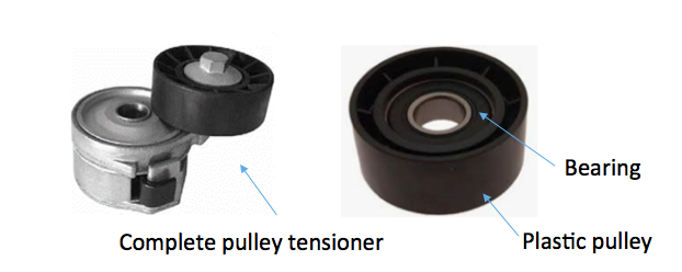 Case 2: Tensioner pulley with optimized mass/inertiaDuring the development of a new bearing pulley for an auxiliary belt tensioner it was recognized that the material and weight of the pulley is key for optimal operation of the whole belt system. To optimize the life of both the pulley as well as the whole belt system, it is essential that the components are not only optimized to attain the specified life, but are also optimized to minimize vibrations and resonance effects in the complete belt system. Typically PA66 or phenolic resin and a very specific pulley design are developed, by the engineers of both the supplier and carmaker, to reach the required specifications. What we can often see in the aftermarket are ‘copied’ parts that are made of different materials, even solid steel, which may result in early failure of the pulley and its surrounding parts.
