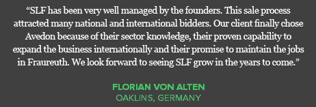 Avedon is a private equity firm that brings its experience from a previous (exited) shareholding in a miniature bearings specialist, and will actively support SLF in unlocking its international potential. Currently, about 90% of SLF’s revenue is generated in the German market.