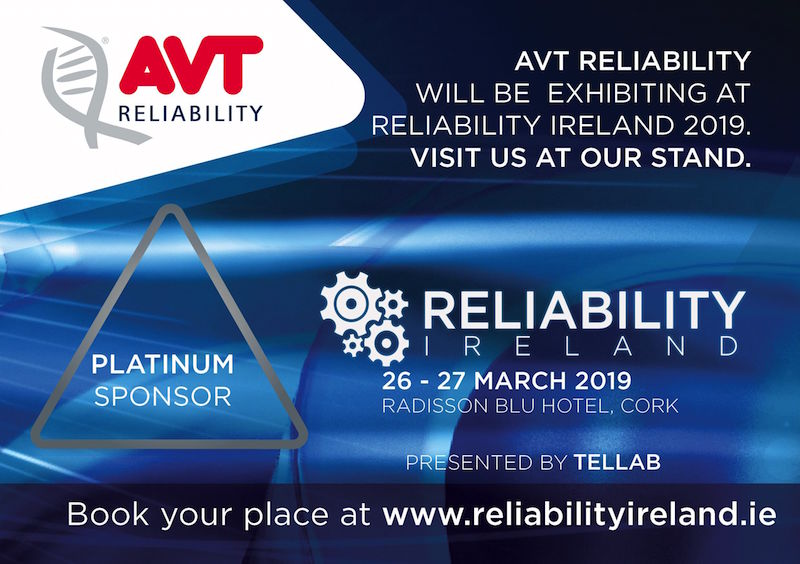 Predictive maintenance and condition monitoring specialists AVT Reliability will be the lead sponsor, as well as speaking and exhibiting, at the Reliability Ireland event in Cork on March 26th and 27th.