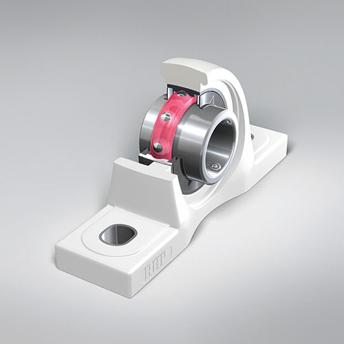 One of the principal products highlighted is NSK’s Silver-Lube mounted unit series. Silver-Lube units comprise high-grade stainless steel bearing rings, cage and balls, with seal core and grub screws, grease nipple, and bolt-hole liners. Further design features include nitrile rubber seals and stainless steel flingers, along with a thermoplastic polyester resin housing. The bearings are factory filled with a wide temperature USDA H1 food-grade grease.