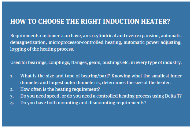 In this article we are discussing “hotmounting”. A bearing (or other part) is heated prior to mounting, allowing the inner ring to expand. Then, you can mount the bearing on the shaft. When it cools down it shrinks and tightens around the shaft.