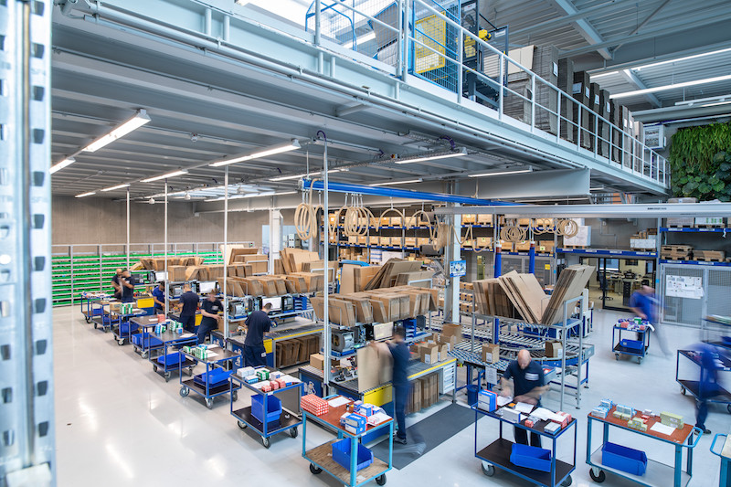 In addition to the state-of-the-art office building, considerable added value has been achieved, particularly in terms of the site’s warehousing capacity. In fact, the site’s storage area and number of pallet spaces have been doubled to 10,357 square metres (111,482 sq ft) and 12,000 places, respectively. Meanwhile, the large, three-level shelving rack facility boasts some 200,000 storage spaces.