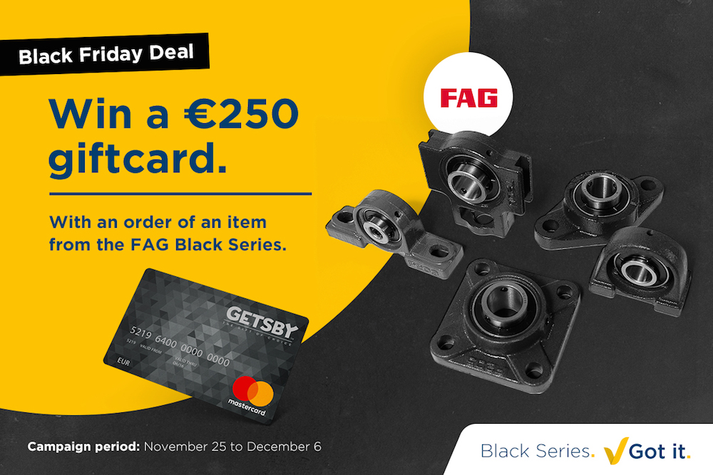 And there’s no better time to promote these characteristic black housing units than during Black Friday. So when you buy an item from the FAG Black Series, you can now win a €250 gift card for you and your team.