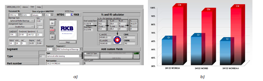Fig. 5 – RKB MTDS software: a) user interface; b) Cr and C0r results of 24122 WOR82A, 24122 WOR82, and 24122 WOR82AA designs