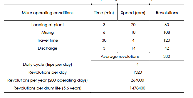 Table 1 – Concrete mixer estimated operating conditions and cycles