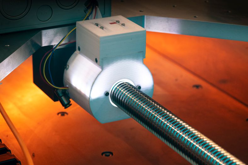 The new system combines a camera with light source attached to the nut of the drive and an artificial intelligence (AI) that evaluates the image data. As the nut moves on the spindle, it takes individual pictures of each spindle section, enabling the analysis of the entire spindle surface.