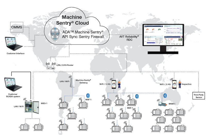 “The Machine Sentry platform allows data to be stored securely in the cloud, where it can be managed by authorised personnel on one easy-to-use interface, from any location, using a standard web browser. Vibration data collected from Machine Sentry sensors is then analysed by ADA™ the Automated Diagnostic Assistant.”