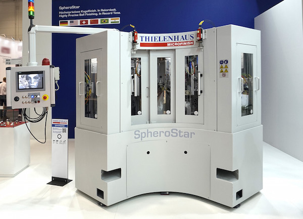Based on the high-precision Sphero machine tool, Thielenhaus Microfinish has developed a highly efficient two-step solution which performs the entire fine-finishing process for spherical workpieces in short cycle times. The new SpheroStar is based upon the MicroStar and NanoStar platforms and like these two it is equipped with an indexing table.