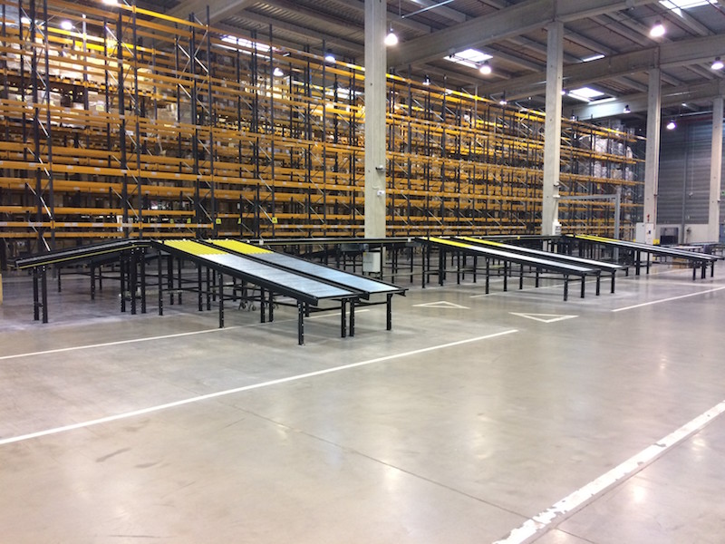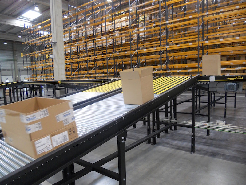 Interroll’s Modular Conveyor platform (MCP) has been chosen as the main conveyor system, which is completed by ramps designed and manufactured by Modumaq solely with Interroll material. The control system is from Siemens and the reading system from Datalogic, and a communications interface has been developed between the Modumaq system and Arvato’s warehouse management system by means of a protocol for exchanging data in real time.