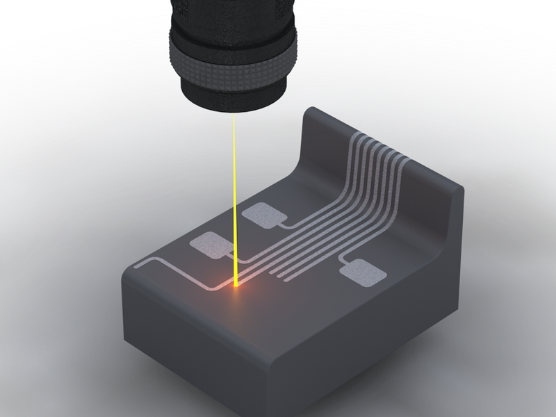 Direct laser structuring enables 3D-MID (Mechatronic Integrated Devices) assemblies to be produced. When using 3D-MID, electronic components can be fitted directly onto a three-dimensional base body, without circuit boards or connecting cables. The base body is manufactured using an injection moulding process, whereby the thermoplastic material has a non-conductive, inorganic additive.