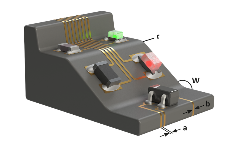 Minimum distances between the conductor paths (a): 50 – 150 μm. Minimum width of the conductor paths (b): 50 – 150 μm