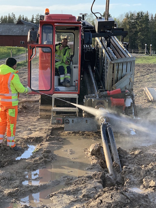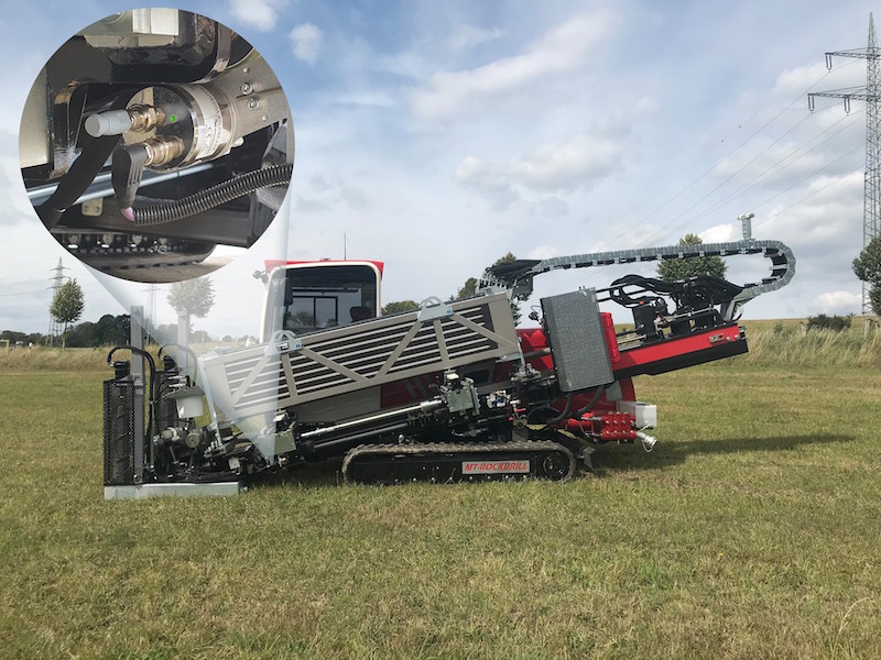 Powerdrill and Rockdrill series self-propelled horizontal drill rigs from the German manufacturer AT-Boretec are available in a wide range of scaled tonnage classes. Characterised by easy loading of drilling and reaming tools and pipeline sections for fast execution of multiple drilling operations, the machines cater for everything from small diameter pipelines for fibre optic cables to large bores for wastewater drainage systems. Especially cost-effective and speed efficient where pipelines need to be located under roads, buildings and other sealed-surfaced sites, the machines can bore up to several hundred metres horizontally with a drilling and flushing process that employs a combination of drill heads and reamers to expand the bore and when required to deliver sections of pipeline. Each machine is equipped with 40 to 70 ‘drill pipes’ stored in a side-mounted magazine with lengths varying from three to four and a half metres – which are removed using a gripper unit, then assembled on special drilling carriage and bolted to the drill pipe already located in the ground.