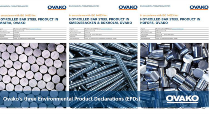 Ovako has published a set of new Environmental Product Declarations (EPDs) to provide customers with independently audited environmental footprints for its specialty steels. The EPDs cover the full environmental impact, including the carbon footprint of hot-rolled steel bar from Ovako’s Hofors, Imatra, and Smedjebacken and Boxholm (Smebox) mills.