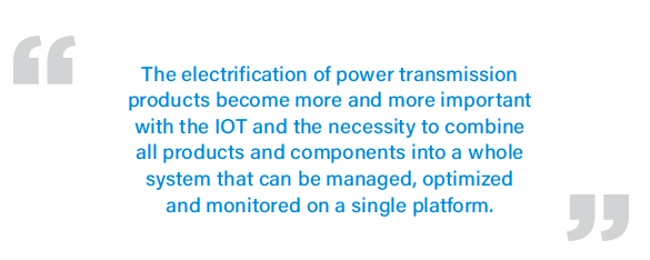 Electrification of power transmission equipment actually started more than ten years ago, when the first companies started to propose solutions to track up and follow the performance of their products. Nowadays the electrification of power transmission products become more and more important with the IOT and the necessity to combine all products and components into a whole system that can be managed, optimized and monitored on a single platform. The electrification is also a unique opportunity to create extra added value on products and keep the technological leadership of our members.