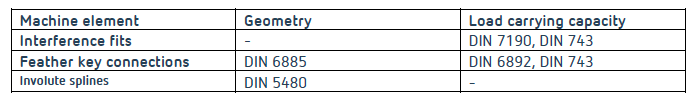 Table 1: Available descriptions for shaft-hub connections