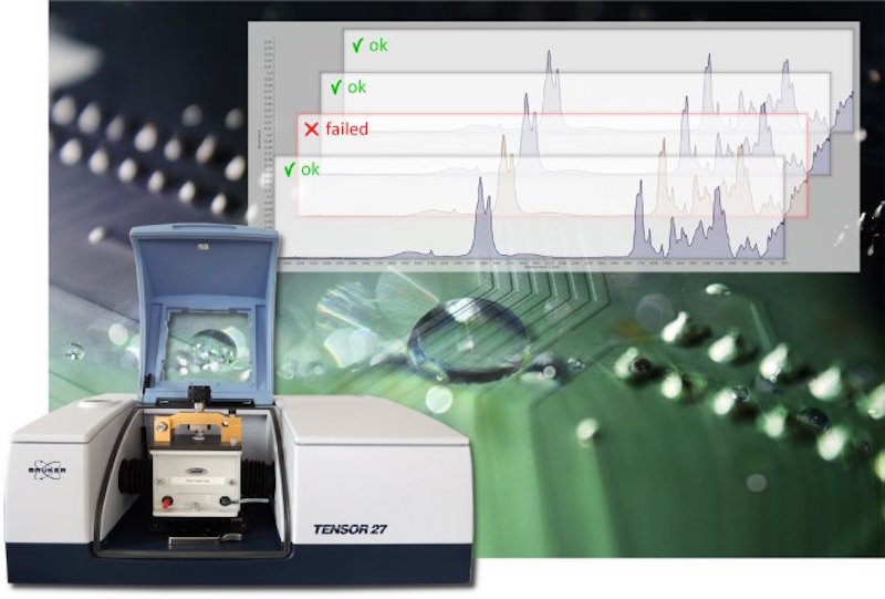 The rapid global growth rates in electronics production, combined with constantly rising quality standards and high requirements on process reliability, require new, innovative measurement methods in order to achieve a market-leading position, to stay competitive and to guarantee the highest quality standards to customers. Established testing methods, such as optical and electrical tests, often fail to detect serious quality deviations such as a high moisture content in the PCB substrate, thermal damage, insufficient degree of crosslinking or chemical impurities. However, these can be detected precisely and reliably by molecular fingerprinting with an infrared spectroscopic analysis, the so-called FT-IR analysis. An infrared spectroscopic analysis uses the principle of light absorption in the infrared range of the electromagnetic spectrum. In this process, the electromagnetic energy is converted into oscillation energy. This energy is unique for each sample as this specific molecular fingerprint. Thus, allows the clear identification of the material.