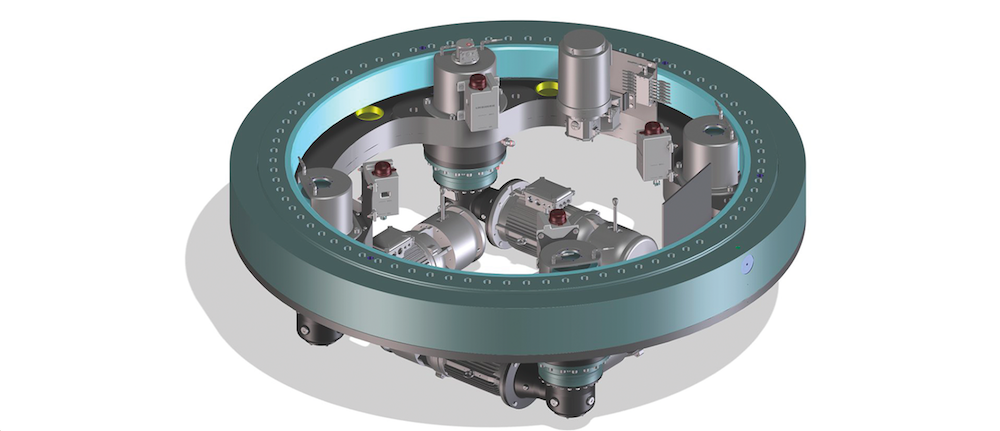 “The electric adjustment system for the wind-assisted propulsion is a completely pre-assembled module. It consists of a slewing bearing, a slewing drive and an electric motor. Together with control and power electronics built into a control cabinet, it makes the sail turn,” Benjamin Schmid continues. An integrated position detection and monitoring system takes care of the constant comparison of the target/actual rotation. In addition, a lubrication system is built into the module. Controlled via the control cabinet, the system triggers appropriate lubrication intervals for the bearing raceway, the gearing and the pinions. The module comes as a plug-and-play solution. Since it is completely pre-assembled, the module allows an extremely quick deployment. The tedious assembly of the gearbox or the adjustment of the tooth-flank backlash, for example, is no longer the case.